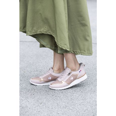 【さっと履ける「NEXTEP」シリーズ】軽量リフトアップスニーカー「LCS シャルテ リフト SI」。ファスナーを追加し(ファスナーは装飾の一部)、エレガントなデザインと機能性を搭載したフェミニンプラスシリーズ。ファッションの幅が広がるヒールアップしたスタイルに美しい差し色をプラス。アッパーデザインはフィット感に拘りながら、きれいなシルエットを実現。防水設計(完全防水ではございません)の構造にて急な雨のシーンに対応出来るよう、グリップ性、安定性を考慮したアウトソール設計です。機能的なインソールを採用しクッショニングと消臭機能を搭載。ヒールにはフランスのブランドらしいエレガントなデザイン落とし込み、上品な印象に。女性らしいカラーを採用することで機能性とデザイン性を両立させました。どんなシーンでもいつもの自分のスタイリングを楽しめる1足です。
