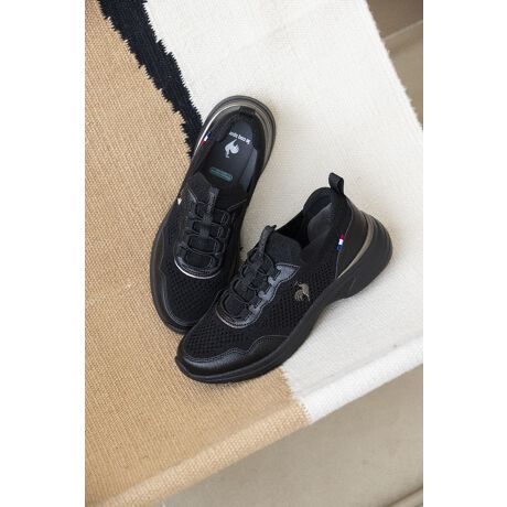 屈曲性と安定性にこだわった、ランニングスタイル。 『ワイド設計(3E相当)』でゆったりとした履き心地ながら、スタイリッシュなシルエットに仕上げています。アッパーは柔らかく足にフィットするニット仕様で、着用シーンを広げます。自然界で分解されにくいフッ素加工物を一切使用しないC0はっ水剤を使用。(※はっ水機能を保証するものではありません。)シューレースは脱ぎ履きがしやすいようにゴム紐を使用しています。ソールは大胆なスリットを入れるとともに、中足部をTPUシャンク構造にすることで、屈曲性と歩行時の足の捻じれを考慮したデザインに仕上げました。安定性にこだわり足がスムーズに前に前に行くような履き心地を意識しました。インソールには消臭低反発インソールを採用。ヒール部分にはフランスのブランドらしいエレガントなデザイン落とし込み、上品な印象に。女性らしいカラーを採用することで機能性とデザイン性を両立させました。
