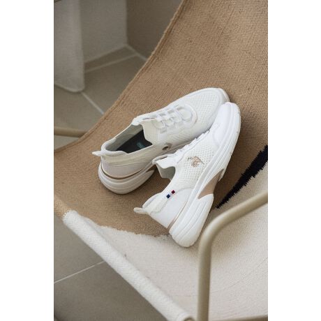 屈曲性と安定性にこだわった、ランニングスタイル。 『ワイド設計(3E相当)』でゆったりとした履き心地ながら、スタイリッシュなシルエットに仕上げています。アッパーは柔らかく足にフィットするニット仕様で、着用シーンを広げます。自然界で分解されにくいフッ素加工物を一切使用しないC0はっ水剤を使用。(※はっ水機能を保証するものではありません。)シューレースは脱ぎ履きがしやすいようにゴム紐を使用しています。ソールは大胆なスリットを入れるとともに、中足部をTPUシャンク構造にすることで、屈曲性と歩行時の足の捻じれを考慮したデザインに仕上げました。安定性にこだわり足がスムーズに前に前に行くような履き心地を意識しました。インソールには消臭低反発インソールを採用。ヒール部分にはフランスのブランドらしいエレガントなデザイン落とし込み、上品な印象に。女性らしいカラーを採用することで機能性とデザイン性を両立させました。