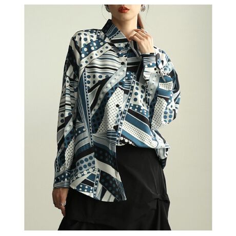 【シャツ】 レディース トップス ブラウス 長袖 幾何学模様 モード カジュアル 春 秋 冬