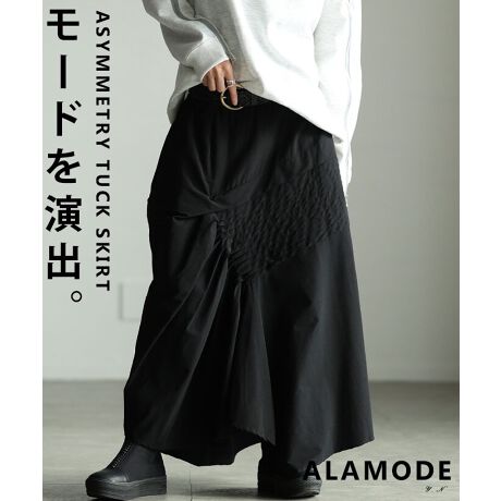 【スカート】 レディース スカート ロング タック モード アシンメトリー 春 夏 秋 冬