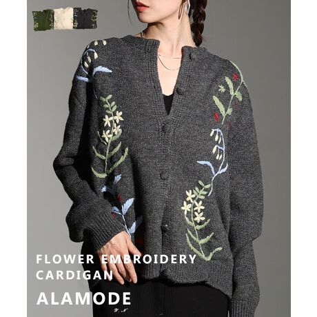 立ち上る草花刺繍が女心をくすぐる、サッと羽織れるニットカーディガンはいくつ持っていても重宝するアイテムです。羽織としては勿論、上までボタンを留めてトップス風に着こなすのもおすすめです。