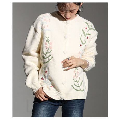 立ち上る草花刺繍が女心をくすぐる、サッと羽織れるニットカーディガンはいくつ持っていても重宝するアイテムです。羽織としては勿論、上までボタンを留めてトップス風に着こなすのもおすすめです。