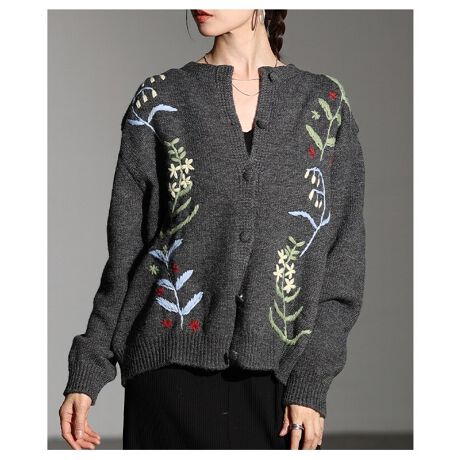 立ち上る草花刺繍が女心をくすぐる、サッと羽織れるニットカーディガンはいくつ持っていても重宝するアイテムです。羽織としては勿論、上までボタンを留めてトップス風に着こなすのもおすすめです。