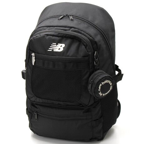 軽量で収納力抜群のデイパック。<br>約32Lの容量に豊富なポケットを備え、通学やデイリーユースに最適です。<br>前面ポケットは小物の仕分けに便利な多機能構造で、ノートや折りたたみ傘などもすっきり収納可能。<br>サイドのメッシュポケットにはボトルやペットボトルも入れられます。<br>ワイヤレスイヤホンなどの収納に便利なミニポーチ付きで、デザイン性も実用性も◎。<br>NewBalanceらしいスポーティなデザインで、男女問わずコーデに馴染む万能リュックです。