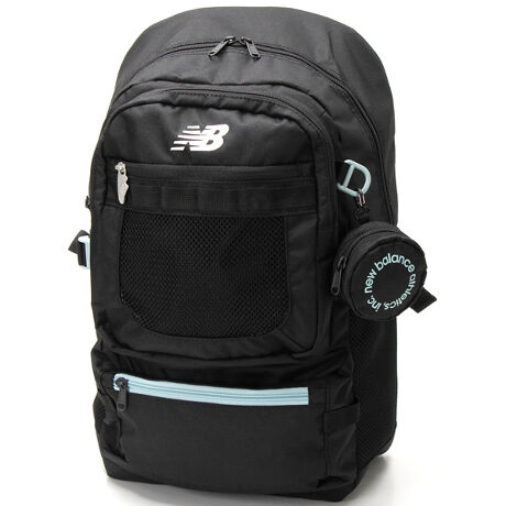 軽量で収納力抜群のデイパック。<br>約32Lの容量に豊富なポケットを備え、通学やデイリーユースに最適です。<br>前面ポケットは小物の仕分けに便利な多機能構造で、ノートや折りたたみ傘などもすっきり収納可能。<br>サイドのメッシュポケットにはボトルやペットボトルも入れられます。<br>ワイヤレスイヤホンなどの収納に便利なミニポーチ付きで、デザイン性も実用性も◎。<br>NewBalanceらしいスポーティなデザインで、男女問わずコーデに馴染む万能リュックです。
