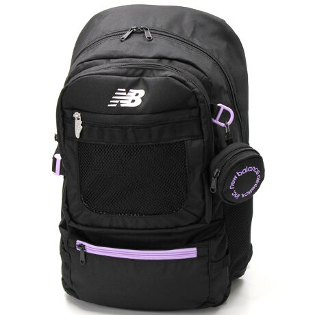 軽量で収納力抜群のデイパック。<br>約32Lの容量に豊富なポケットを備え、通学やデイリーユースに最適です。<br>前面ポケットは小物の仕分けに便利な多機能構造で、ノートや折りたたみ傘などもすっきり収納可能。<br>サイドのメッシュポケットにはボトルやペットボトルも入れられます。<br>ワイヤレスイヤホンなどの収納に便利なミニポーチ付きで、デザイン性も実用性も◎。<br>NewBalanceらしいスポーティなデザインで、男女問わずコーデに馴染む万能リュックです。