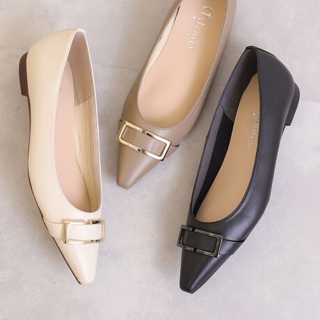 ・ソフトポインテッドトゥでつま先がすっきり、フラットシューズでも脚がきれいに見えます。