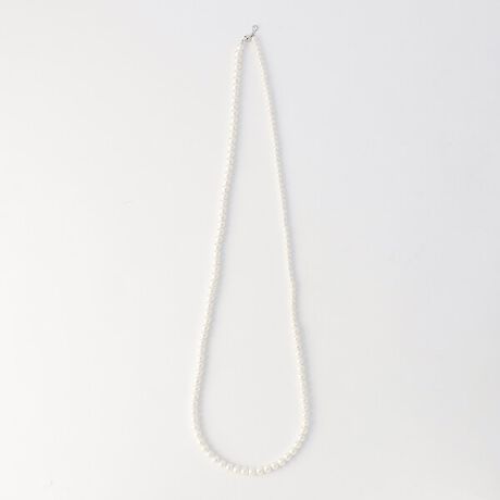 やや黄みがかった優しいホワイトカラーと光沢なので、首元にコットンパールのネックレスがあると顔色がぱっと明るく見える効果も期待できます。