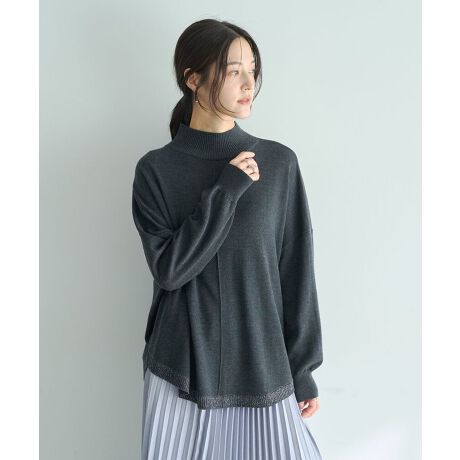 裾にラメを施したさりげない輝きが印象的なラウンドヘムニット。