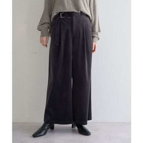 クラシカルなムードを纏うベルト付きワイドパンツ。