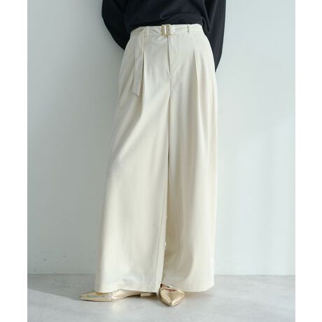 クラシカルなムードを纏うベルト付きワイドパンツ。
