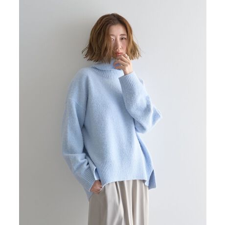 程よく立ち上げたタートルネックに後ろ首元のスリットを効かせた、大人の抜け感を叶えるニットプルオーバー。