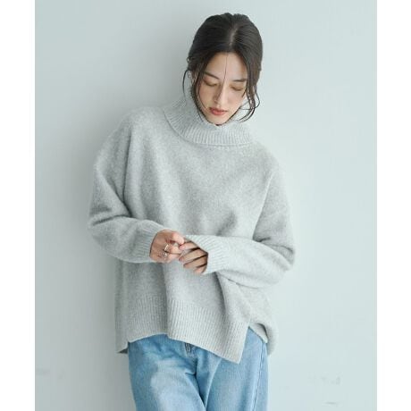 程よく立ち上げたタートルネックに後ろ首元のスリットを効かせた、大人の抜け感を叶えるニットプルオーバー。