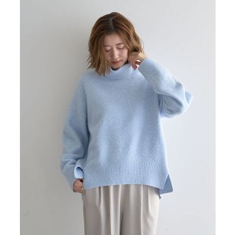 程よく立ち上げたタートルネックに後ろ首元のスリットを効かせた、大人の抜け感を叶えるニットプルオーバー。