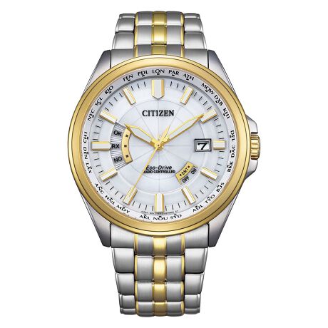 やや大きめの43mmケースに、視認性を確保した夜光付きの太めの針とインデックスを採用したエコ・ドライブ電波時計。