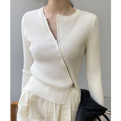 スラッシュジップが特徴の洗練された大人のリブニット。