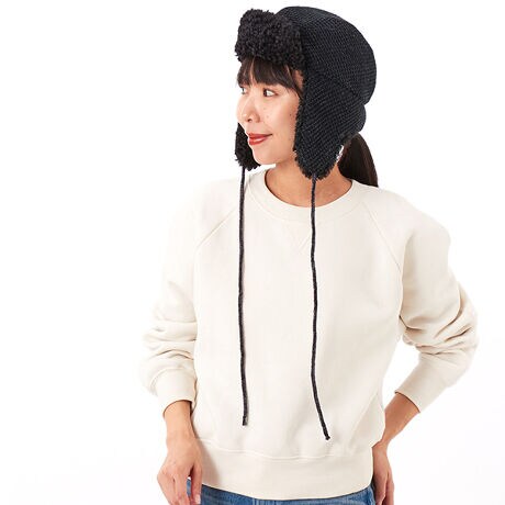 [型番:S16-513Q]ベロア調の生地と、ボア生地を使ったパイロットキャップ風の帽子。あご紐がついており、たらしてかぶってもあご下で結んでもかわいくかぶれます。使いやすいカラー展開なので、普段のコーディネートに合わせてお選びいただけます。