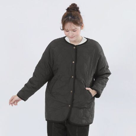 【GO OUT COLLECTION】HEAT機能綿を使用した、暖かなリバーシブル・ブルゾン。◆ポイント・表はデイジー柄の中綿キルト、裏はボアで左胸にデイジー刺繍・FRONTホック開き・表裏ともそれぞれポケット付き・長袖◆コーディネートスタイリングに合わせて表情を変えられる一枚です。すっきり巻ける「ポケッタブルダウン マフラー」がバランス良くマッチします。[型番:225-554816]