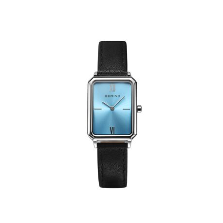 クラシックでスマートな薄型レクタングル型ケースに、BERINGを象徴するアイスブルーと高級感のあるチャコール文字盤をレザーストラップに合わせたコレクション。