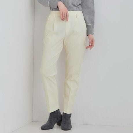 腰周りにゆとりがあり、足首周りがきれいに見える裾幅にこだわったテーパードパンツですっきりと上品な印象。