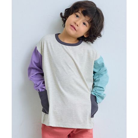 袖を大胆に切り替えたクレイジー配色が主役の長袖Tシャツです。