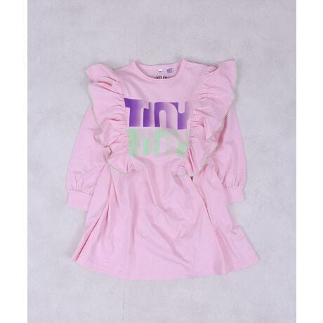 肩から身頃にかけて入ったフリルが華やかで、動くたびにふんわり揺れるのがポイントです。