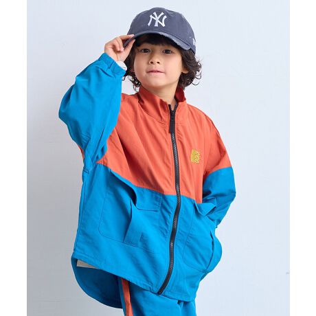 配色切替が目を引く、スタンドカラーのジップジャケットです。