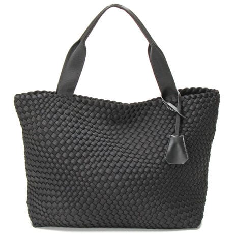 ウェットスーツ素材を使用した大人っぽくトレンド感のあるメッシュ編みトートバッグ。