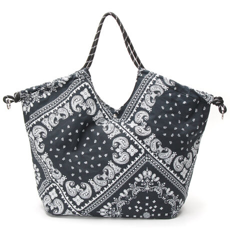バンダナ柄の生地とスポーティーなパラコードを組み合わせたカジュアルなトートバッグ。
