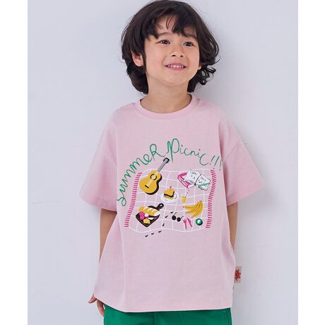 フードやスイーツなどのポップなプリントが目を引く半袖Tシャツです。