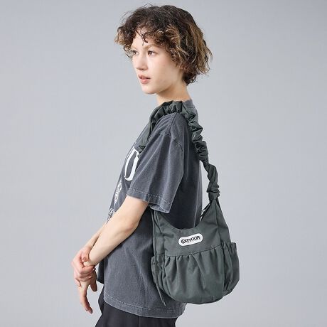 ギャザーの効いたショルダーストラップがデザインのアクセントとなり、軽量ナイロン素材で日常使いにもぴったりなアイテムです。