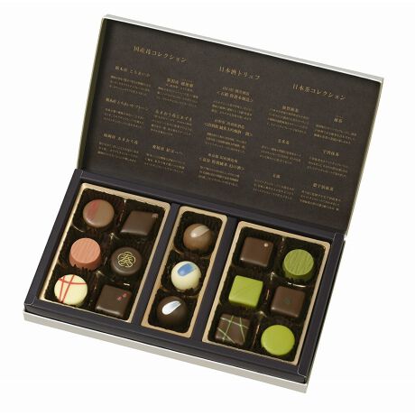 ひと箱で「国産苺」、「日本茶」、「日本酒」の味わいが楽しめる、贅沢なアソートボックス。トップショコラティエ大石の技術と感性を心ゆくまでお楽しみください。