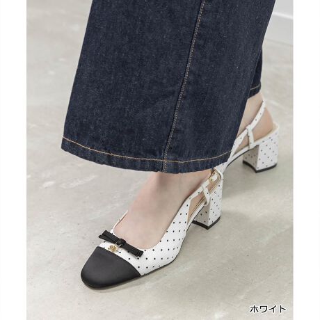 上品なリボンディテールのバックストラップパンプス。
