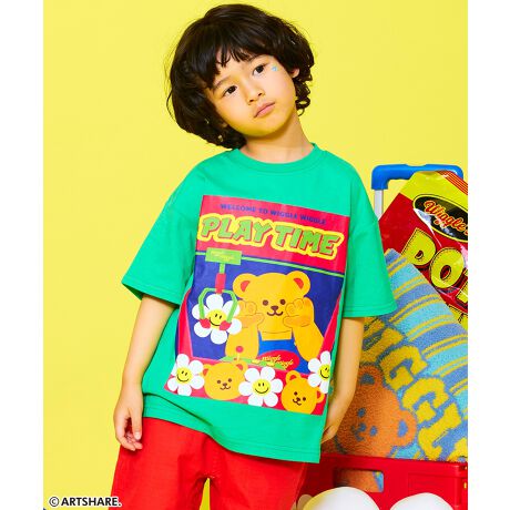 wiggle wiggleらしい遊び心たっぷりのグラフィックをフロントにプリントした半袖Tです。