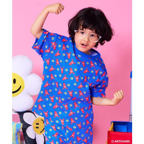 ポップなカラーリングと総柄デザインで、キッズらしい元気いっぱいの着こなしを楽しめます。