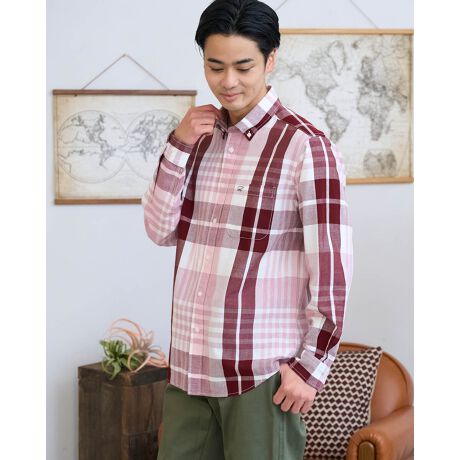 大柄マドラスチェックのボタンダウン襟シャツです。