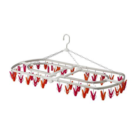 【絡みにくいピンチで快適!】毎日のお洗濯をもっとスムーズにしてくれる「アルミジャンボ角ハンガー44ピンチ」。【軽くて丈夫なアルミ構造】軽量で扱いやすいアルミフレームが持ち運びやすさと耐久性を両立。使い勝手抜群の角ハンガー。【絡みにくいピンチ設計】チェーンを使わない構造でピンチ同士が絡みにくく、広げる動作もスムーズに行えて快適。【隠して干せる二重配置】内側のピンチに下着を干し、外側にタオルを掛ければ、目隠しにもなる干し方が可能!【リブ入りで強度アップ】リブ入りフレームがたわみやねじれをしっかり抑えてくれる◎長期間使いやすい頼れる耐久性。【しっかり掴む高品質ピンチ】紫外線に強く、衣類をしっかりホールドするピンチ。風の日でも安定して使える安心のつまみ力。【取替え簡単なクリップ式】ピンチはクリップ式で簡単に交換でき、劣化してもサッと付け替えられる便利さが嬉しいポイント【折りたためる省スペース収納】使わない時は折りたたんでスリムに収納!洗濯カゴの横にも収まりやすい省スペース設計。【気分で選べるカラーバリエーション】スタイリッシュなカラーや、かわいいカラーなどお好みで選べて、楽しさもプラス。