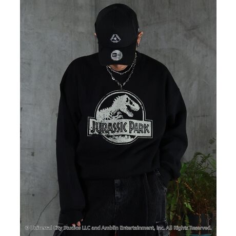 世界中を熱狂させたあのSFアドベンチャー映画『Jurassic Park』の公式ロゴを大胆にあしらったスウェット。