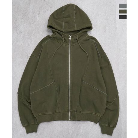 ILL'S 裏毛 カットオフ切り替え ZIPパーカー