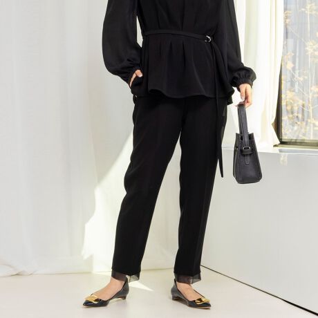 ・スッキリとしたペンシルシルエットはトップスを選ばず、オンオフ問わず様々なシーンで活躍するアイテム