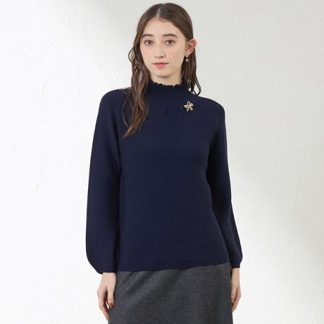 襟のシャーリングディテールがポイントのガーター編みのプルオーバー。