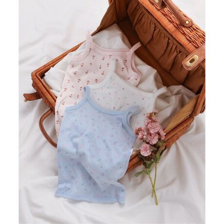 apres les cours(アプレレクール)の肌着「GIRLSフライス総柄キャミソール」は、手頃な価格とおしゃれなデザインが人気!毎日着るものだからかわいいインナーで♪