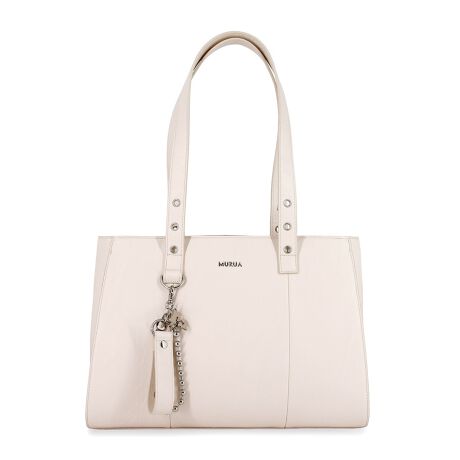 かっちりとしたデザインも持ち手のハトメ・付属のベルトチャームで遊び心をプラスしました。