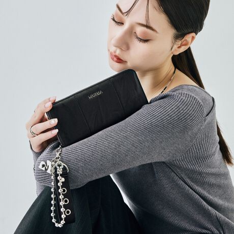 ボールチェーンとハトメが印象的なベルトチャームはMURUAらしいエッジの効いたデザインです。