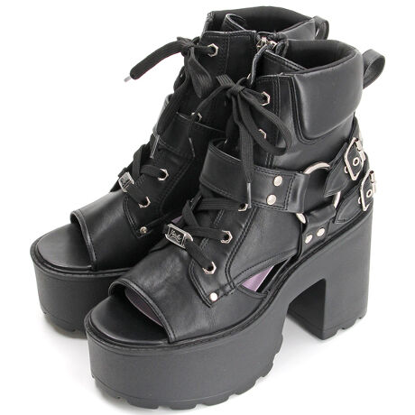 ヒールの高さ:約 10.5cm 前ソールの厚さ:約 6cm 筒丈:約 13cm 筒周り:約 23.5cm(紐で調節可能)幅:2Eサイズ相当*採寸サイズ Lサイズ