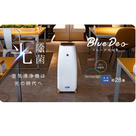 [型番:MC-M102]光除菌のブルーデオに待望のミドルサイズをラインナップ。ブルーデオ M型は、HEPAフィルター搭載で約28畳分の部屋を消臭除菌します。だから不特定多数の人が集まる密室になりがちな会議室・待合室を安心安全でリラックスできる空間をカバーすることが可能です。