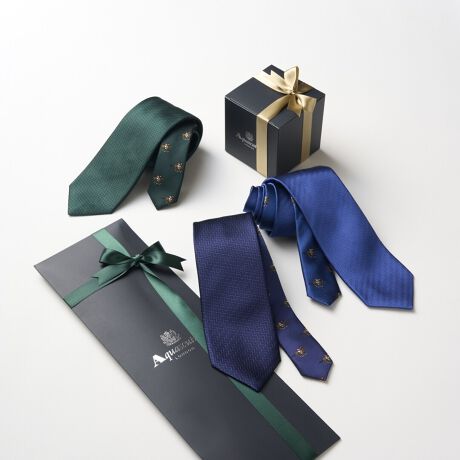大切な彼や上司、尊敬する方へのギフトに。来年の干支である「馬(午)」にちなんだ、躍動感あふれるジョッキーモチーフをあしらったアクアスキュータムのネクタイを自信を持っておすすめします。
