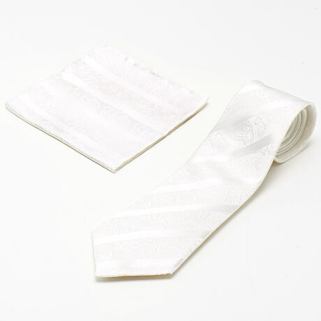 繊細なペイズリー柄をストライプ調に織り上げた、アクアスキュータムのフォーマルタイ。遠目には端正なストライプ、近くで見ると優雅なペイズリーが浮かび上がる奥行きのあるデザインが、胸元にさりげない華やかさと品格を添えます。同柄のポケットチーフ付きで、コーディネートに統一感と完成度をプラス。結婚式や式典、格式あるビジネスシーンまで幅広く対応し、清潔感・信頼感・上質感を自然に演出できる一本です。