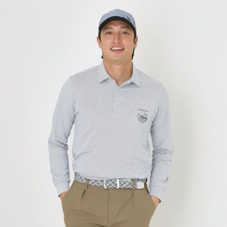 気品漂うシャンブレーストライプ柄が特徴の長袖ポロシャツ。